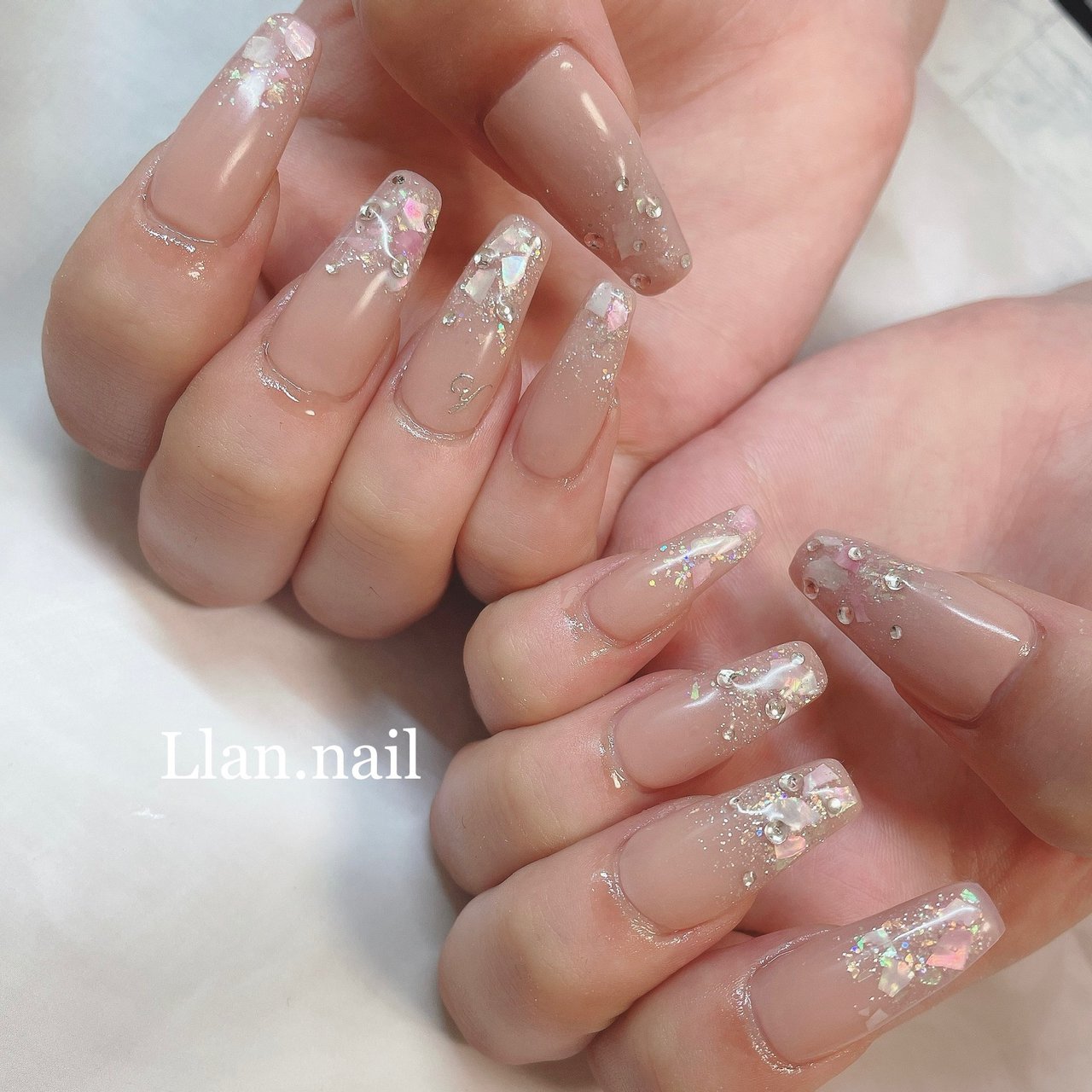 人気のうるうるプルプルネイル お手元が綺麗に煌めきます スカルプ スカルプネイル ロングネイル 夏ネイル クリアネイル 天然石ネイル キラキラ ネイル ネイル ネイルデザイン スカルプデザイン 北新地 中崎町 ネイルデザイン ネイル ネイルカラー